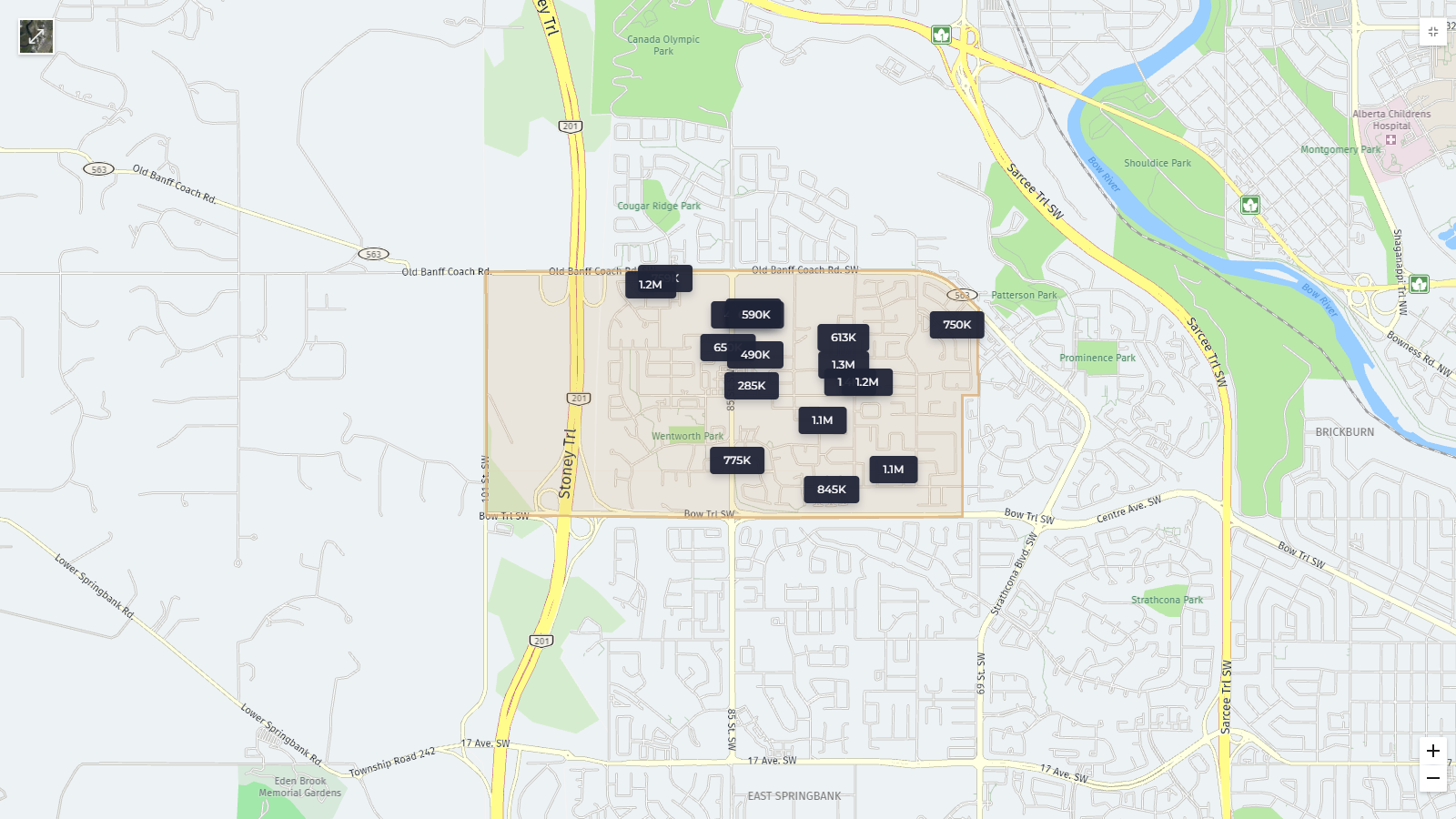 The area boasts beautiful natural landscapes, providing residents with stunning views and a peaceful atmosphere. With proximity to the Rocky Mountains, West Springs offers outdoor enthusiasts a range of activities from hiking and biking to leisurely strolls in the numerous parks and green spaces like the nearby Wentworth and West Springs parks.